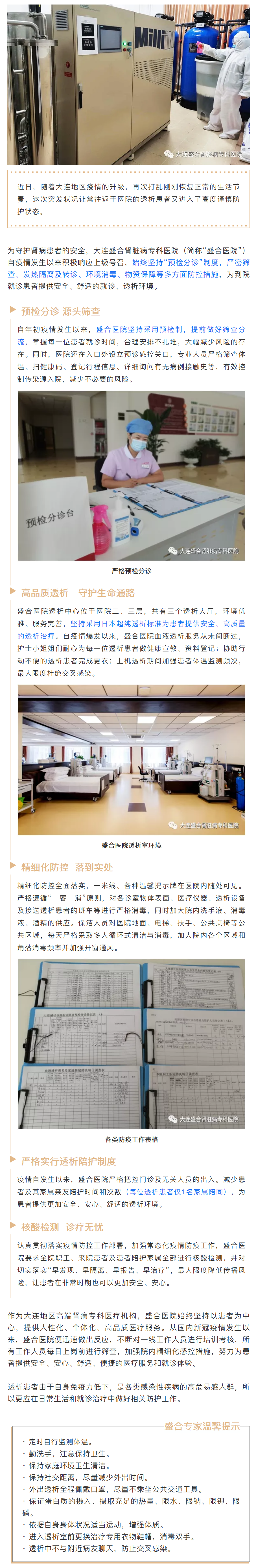 【大连盛合医院】安心就诊 放心透析 抗击疫情盛合医院一直在行动